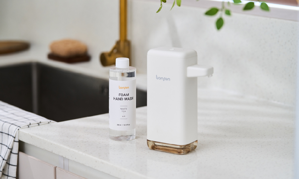 • 桌面擺放也好看: 如果你偏好放在檯面上,bonson 簡約純白的幾何外觀,放在水槽邊同樣是一款能提升居家質感的科技單品。