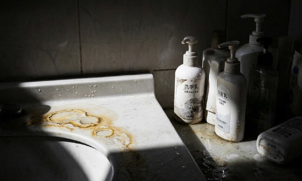 台灣的氣候潮濕,衛浴空間如果沒有做好乾濕分離,往往是發霉的重災區。回想一下你家的洗手台:邊緣是不是放滿了洗手乳、洗面乳等各種塑膠瓶罐?這些傳統的按壓瓶只要碰到水,底部就容易積水發霉,甚至在人造石或陶瓷檯面上留下一圈圈難以刷洗的黃色水垢。